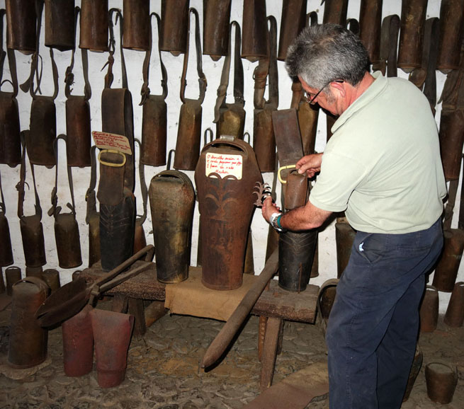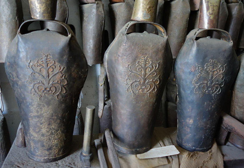 Différentes sonnailles, en bas les étapes de fabrication.