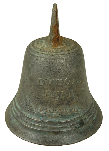 Les grelots, les cloches et un seau à eau bénite coulé avec le moule d’une cloche portent la marque DUBOIS DEFILHES AU PUY.