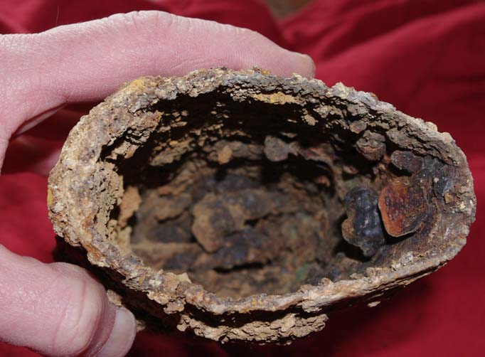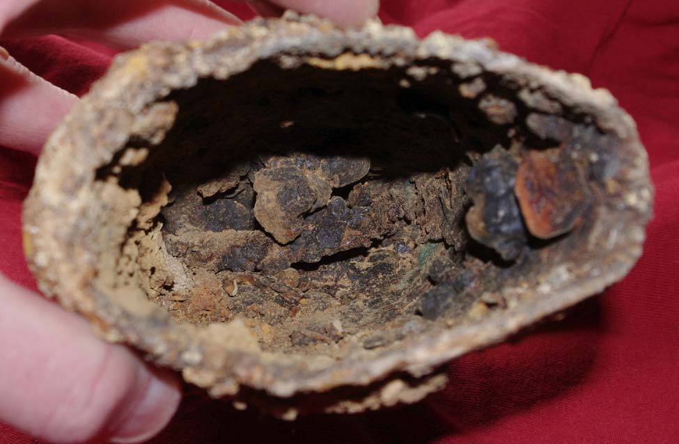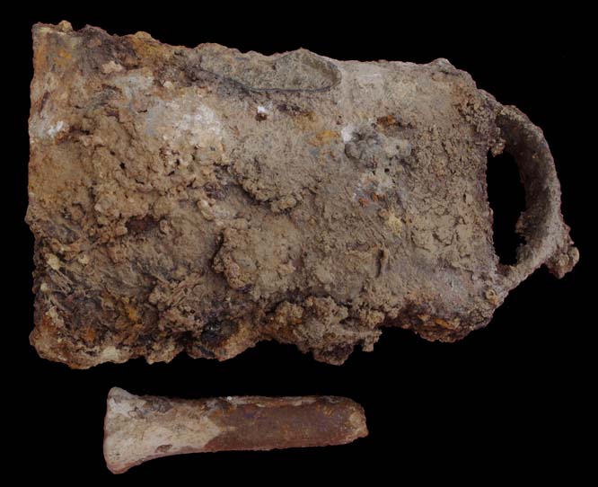 L’état de la sonnaille trouvée à l’extérieur de l’enceinte dans la zone de stabulation en 2005 est surprenant, même dans un contexte aussi favorable aux métaux ferreux. Le traitement de conservation/restauration qu’il a reçu permet une étude plus approfondie.
