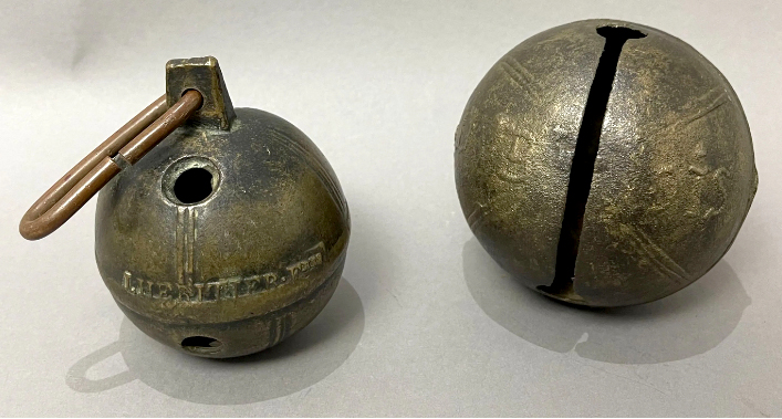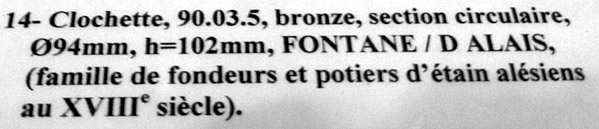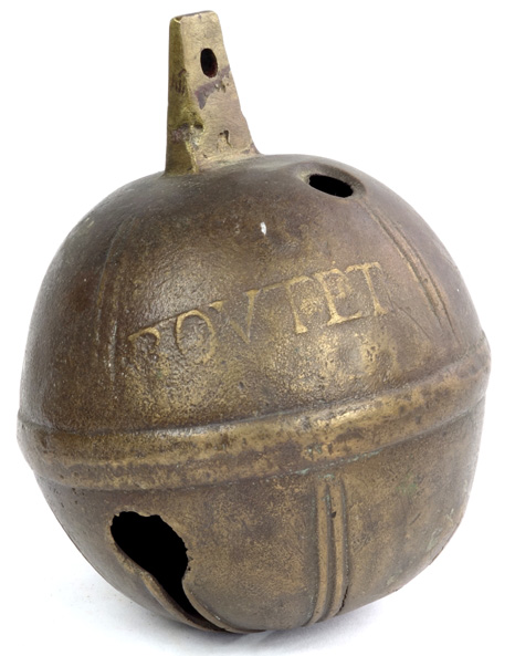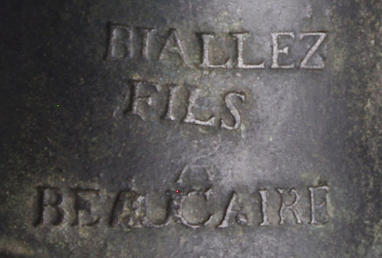 Un grelot comporte les marques, discernables malgré l’effacement, BOUTET NEVEU A MILLAU. On imaginerait bien Antoine utiliser cette marque puisque FILS était déjà prise par son frère. Il s’agit d’une référence à un oncle fondeur comme le faisait Jean-Pierre Dubois au Puy.