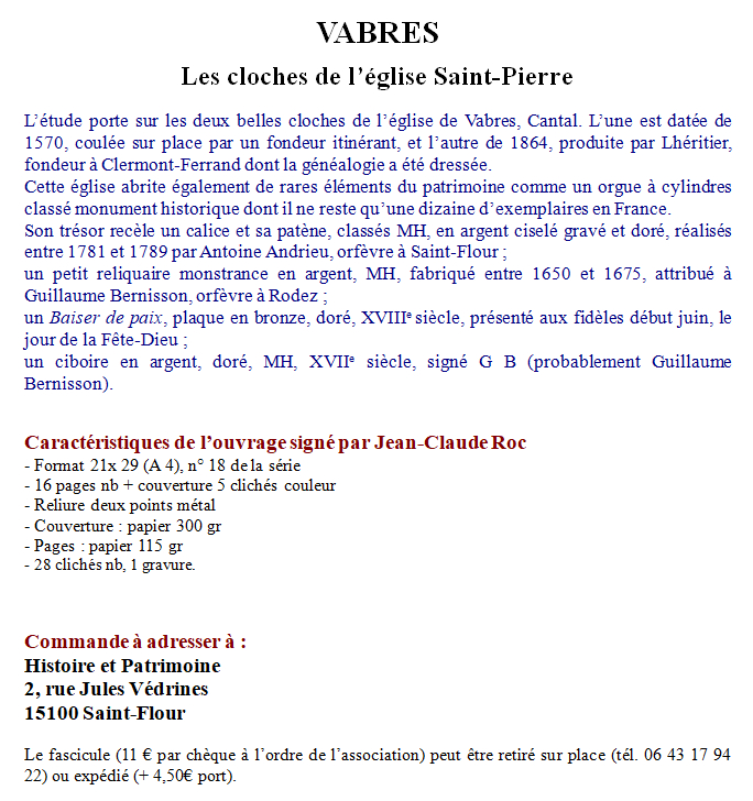 Une publication de Jean-Claude Roc fournit la généalogie et l’histoire de ces fondeurs dans cette monographie : Vabres, les cloches de l’église Saint-Pierre.