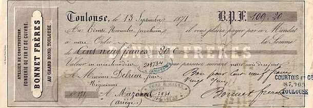 En 1862, Xavier Olin cède l’entreprise à Jules Sylvain Dubois qui signe en 1865 la cloche de Gabre (Ariège) « DUBOIS.J (anciennement OLIN-CHATELET) » (source SFC). L‘entreprise s’intitule « Dubois Jeune et Ce ». Le livre sur l’exposition des beaux arts et de l’industrie à Toulouse en 1865 apporte des informations sur la transmission. Elle est ensuite reprise par Bonnet Frères après 1870. Nous ne connaissons pas les modalités de reprise entre Dubois Jeune et Ce et les Frères Bonnet.