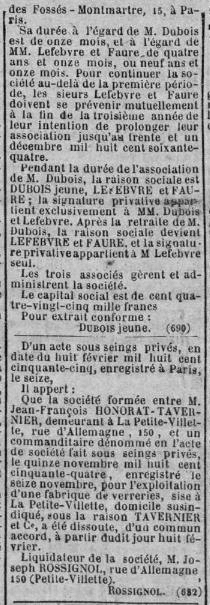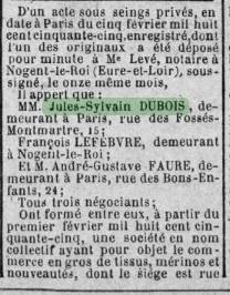 – négociant en 1855, associé avec François Lefebvre et André-Gustave Faure, dans un commerce en gros de tissus mérinos et nouveautés. La société se nomme « Dubois Jeune, Lefebvre et Faure »