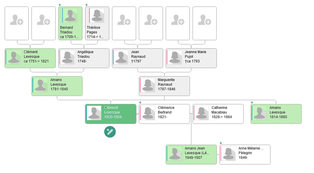 Comme disent les anthropologues, nous avions la production, mais pas l’artisan. Avant nos recherches, seules la date de naissance (1757) et les légendes colportées par le dernier fondeur étaient connues. Les généalogistes s’étaient fait berner par un Amans Triadou tisserand (1766-1836) demeurant rue de Lambergue à Rodez, sans aucun lien avec les fondeurs. La mise en ligne de l’état civil facilite grandement les recherches et a permis de pister Amans Barthélémy Triadou au mariage de son frère Jacques en 1781, puis en 1821 lors de son mariage avec Jeanne Gardes à Montauban où témoigne Clément Levesque, maître coutelier, son beau frère. Le marié a  64 ans, mais on ne lui connait pas de premier mariage.