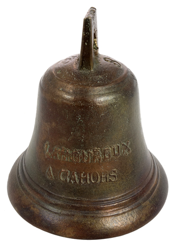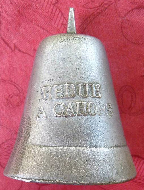 Nous n’avons trouvé aucune information sur les registres d’Etat civil pour Bédué et Lamouroux à Cahors, inconnus comme fondeur de cloches d’église. Leurs marques BEDUE A CAHORS et LAMOUROUX A CAHORS portent la rose identifiée sur les sonnailles de Cazes.