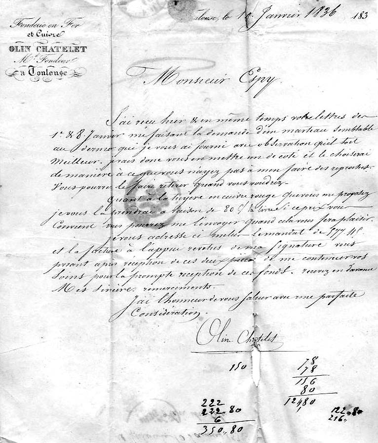 Il semble que l’on puisse attribuer à Joseph les sonnailles marquées CHATELET A TOULOUSE, marque qu’il utilise sur les cloches d’église.