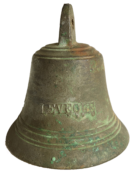 Il est impossible pour l’instant d’identifier l’auteur de la grosse sonnette signée LEVEQUE. Il serait intéressant de retrouver d’autres cloches avec la rosace figurant à l’opposé, si des collectionneurs la relèvent.