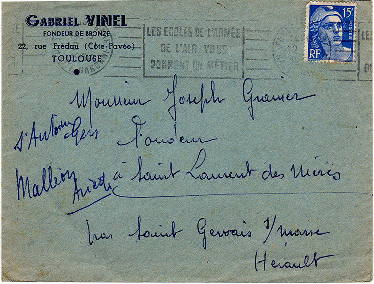 Un de ses fils Joseph, né en 1745 est fondeur à Albi en 1803. Il est probablement à l’origine du mariage de sa nièce, dont il est le témoin, avec le fondeur Albigeois Hypolite Grimaud. Sa marque est très caractéristique, empruntée à Grimaud, avec la barre chevronnée du A de A’lbi comportant une apostrophe.