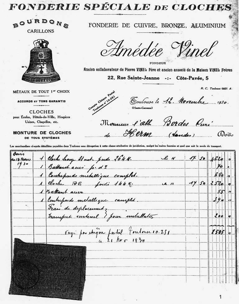 Les deux fils d’Amans, Clément (1808-1884) et Amans (1814-1860) signent plusieurs cloches ensemble.