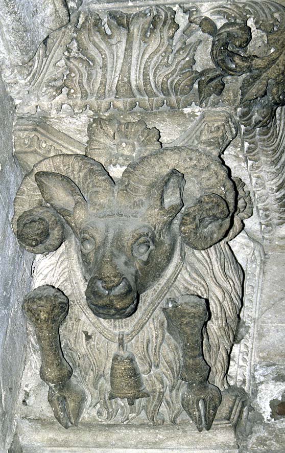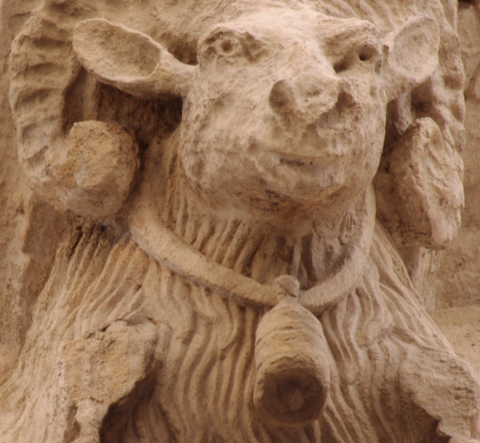 L’iconographie romane nous renseigne mal. Les enlumineurs n’ont pas ensonnaillé les brebis. Les sonnailles sculptées accrochées au cou des dromadaires, bouc et bélier par un inconcevable système de lacet sont en réalité des reproductions de cloches liturgiques coulées, disponibles comme modèle à proximité du chantier.