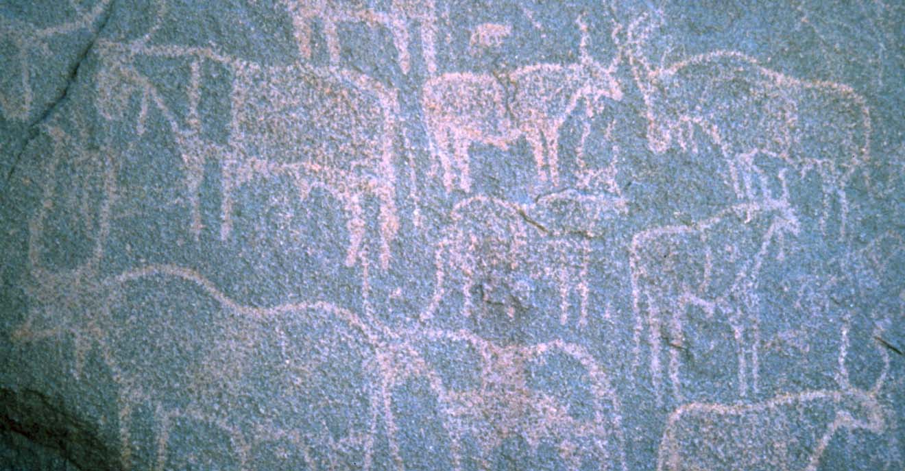 Robert Schwaller, a photographié ces gravures rupestres près de Ideles dans le massif du Hoggar près de Tamanrasset dans le Sud de l’Algérie en 1993. Il l’a publié dans son incontournable Sonnailles et clarines en France . La datation de ces peintures est délicate, mais elles peuvent remonter à 5000 avant J-C. Il propose d’y voir des vaches ensonnaillées.