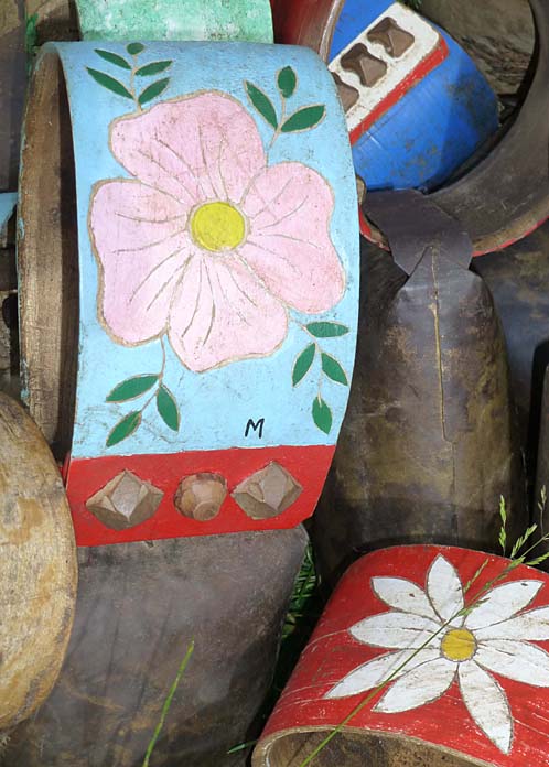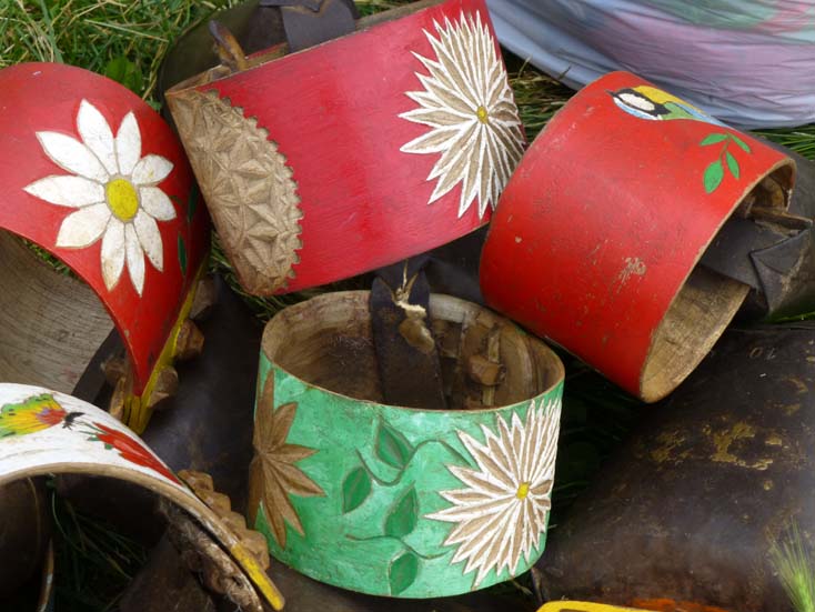 Lucette, Jean-Paul Moulière et leur fils Jean-Marie réalisent des colliers peints et sculptés.