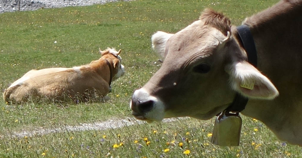 Depuis Scuol, magnifique village avec ses maisons peintes, on distingue aux jumelles plusieurs troupeaux de vaches en estives. Il nous a fallu randonner toute une journée pour les atteindre et découvrir quelques yacks parmi elles.