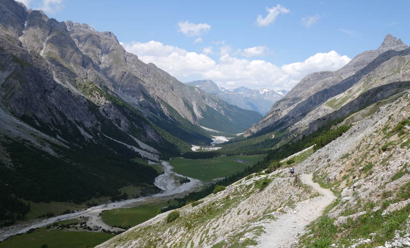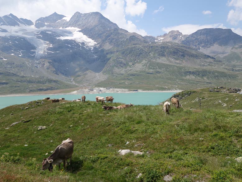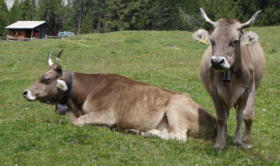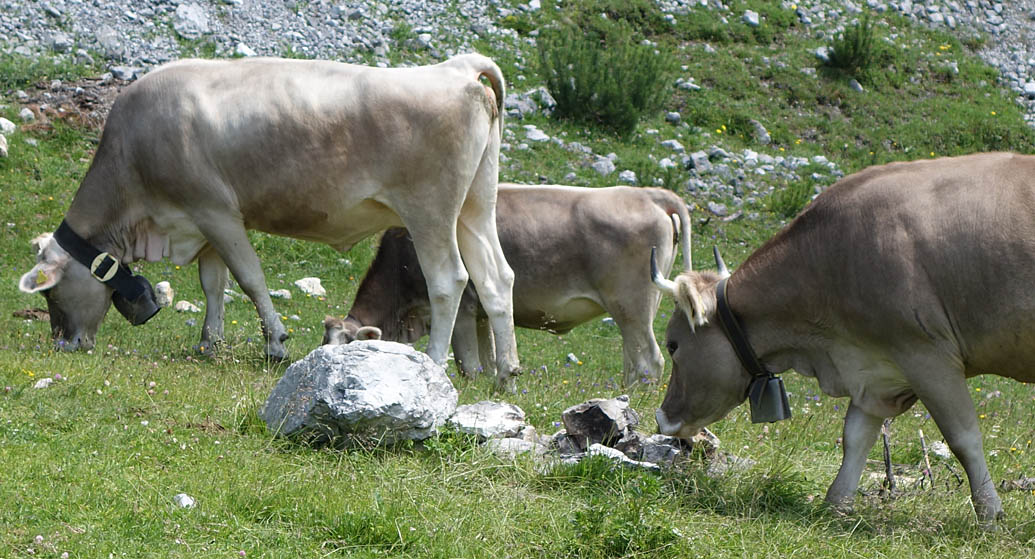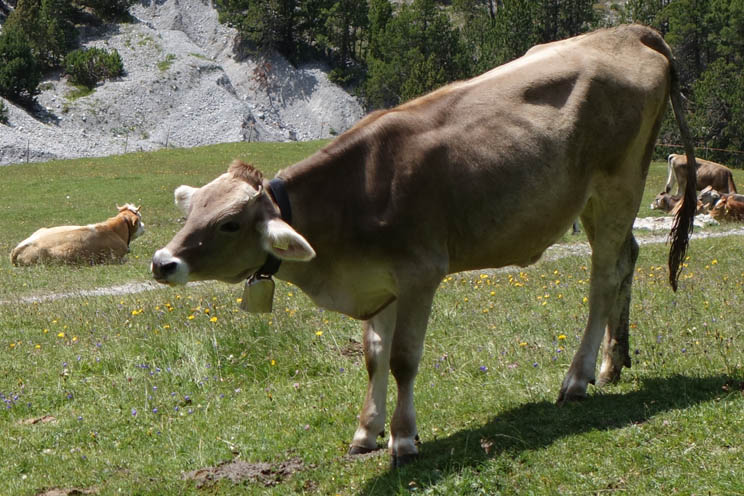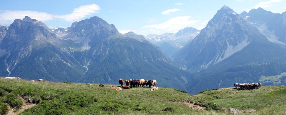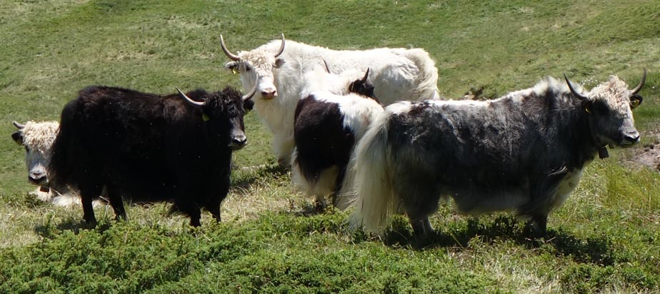 Depuis Scuol, magnifique village avec ses maisons peintes, on distingue aux jumelles plusieurs troupeaux de vaches en estives. Il nous a fallu randonner toute une journée pour les atteindre et découvrir quelques yacks parmi elles.