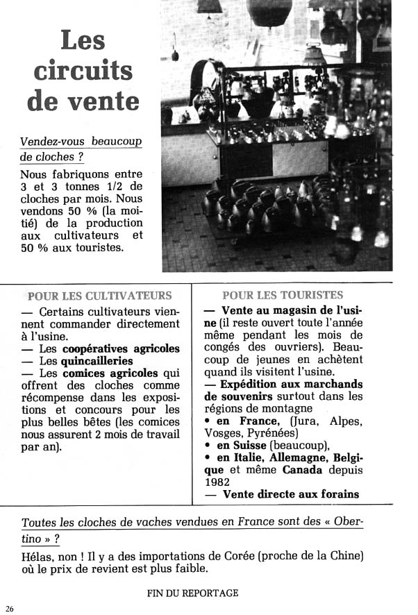 En 1984, la revue Bibliothèque de Travail a consacré son numéro 242 à La fabrication des cloches de vache. Gérard Morel et ses élèves y présentent un reportage réalisé chez Gilbert et Emile Obertino à Morteau (Doubs) qui permet de bien comprendre la fabrication d’une clarine.
