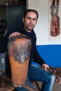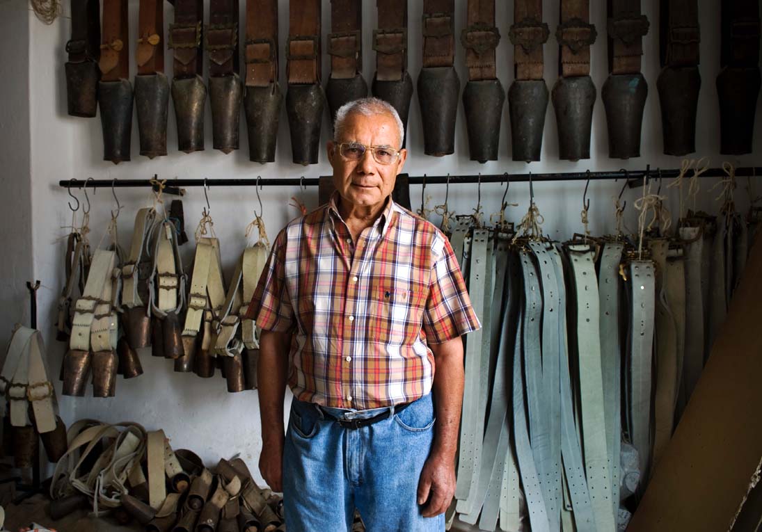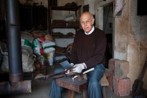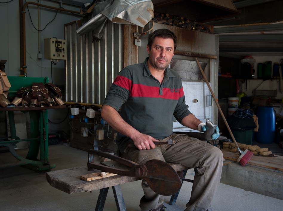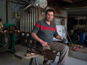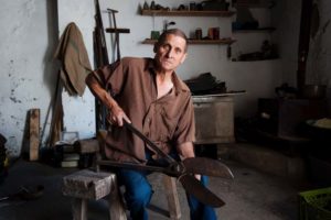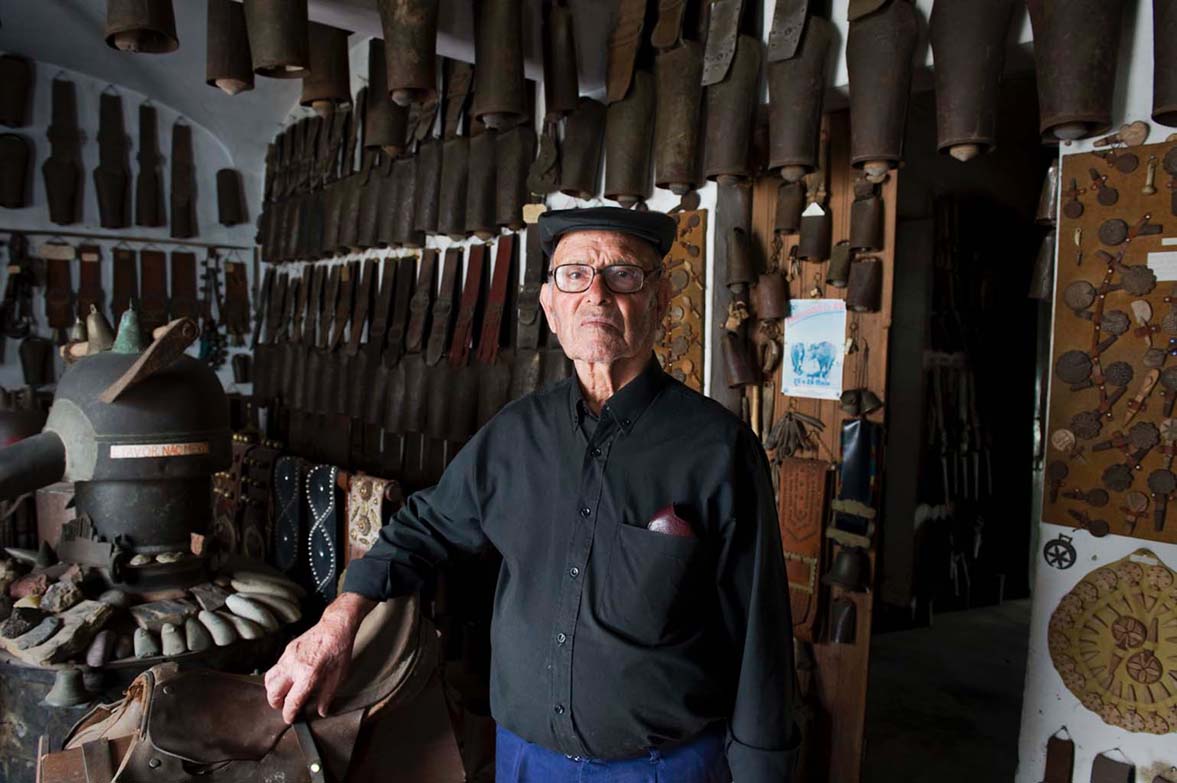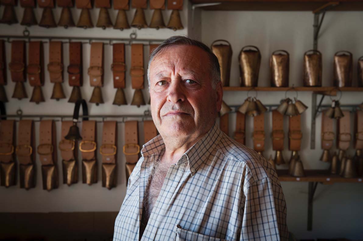 Os chocalhos que fabrica inserem-se na arte de ferreiro.