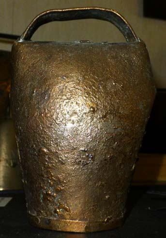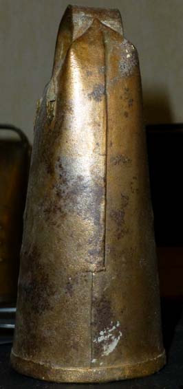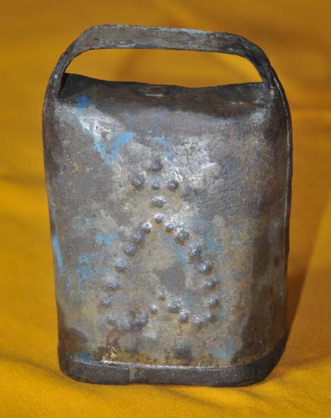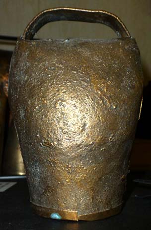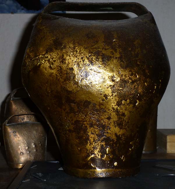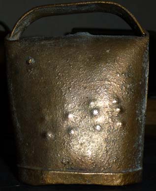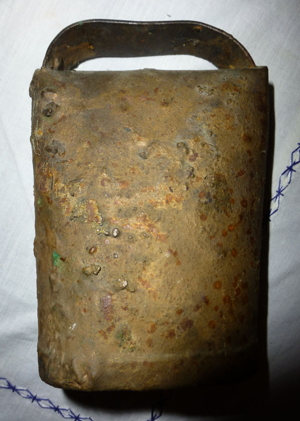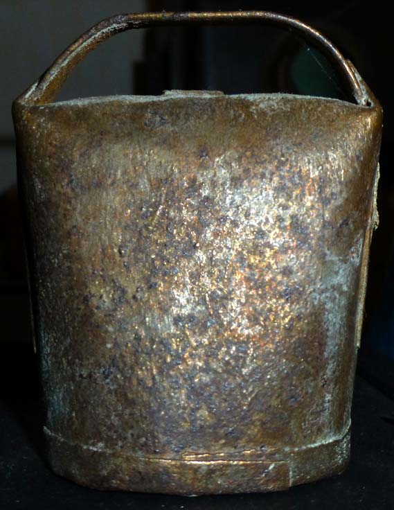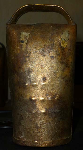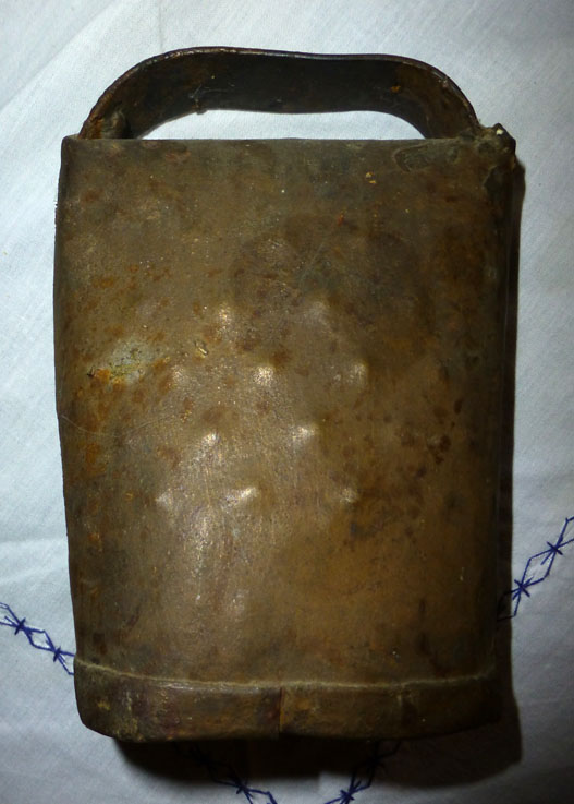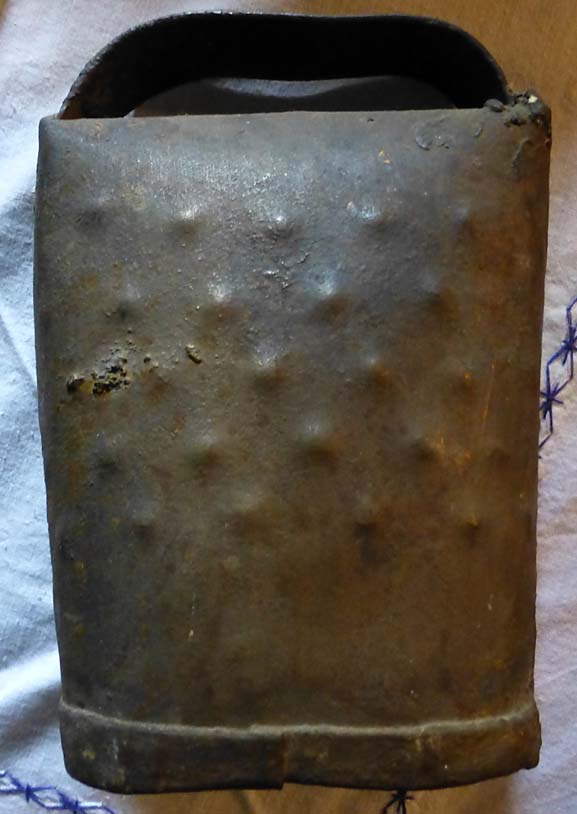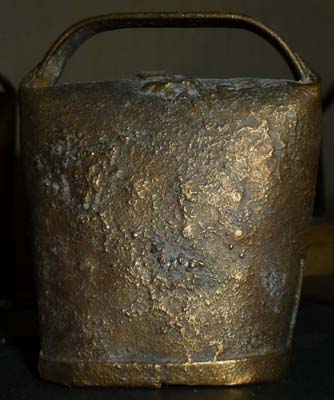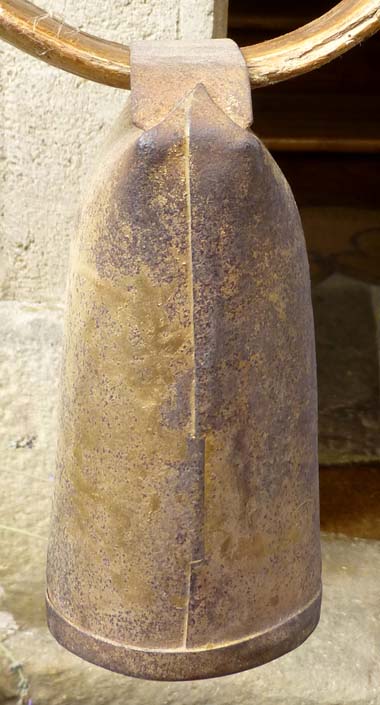 Bélière confectionnée avec une bande de tôle. La forme de la bouche, presque rectangulaire l’apparente à la métaou béarnaise (la Pyrénéenne) plutôt qu’à la Bordelaise à bouche ovale et plus épaisse de tôle.
