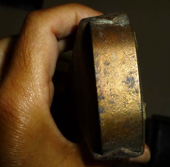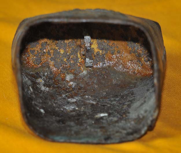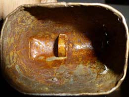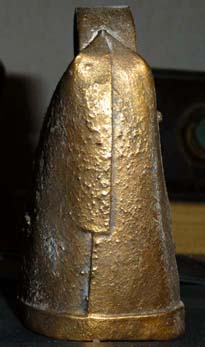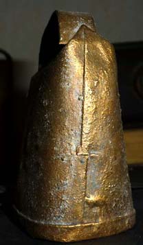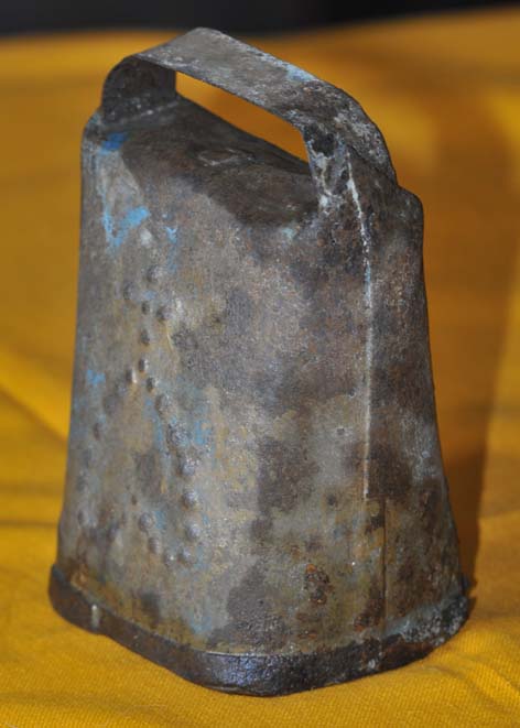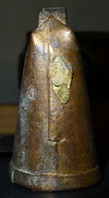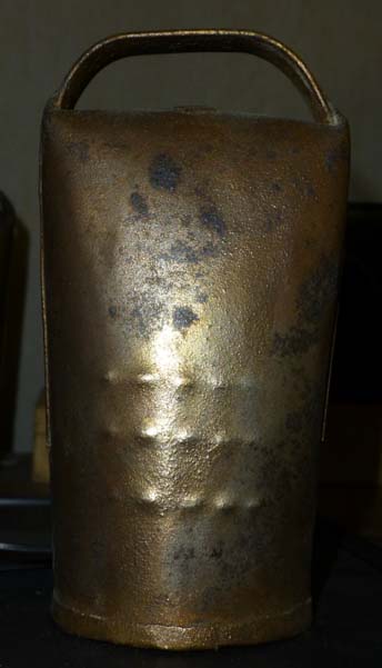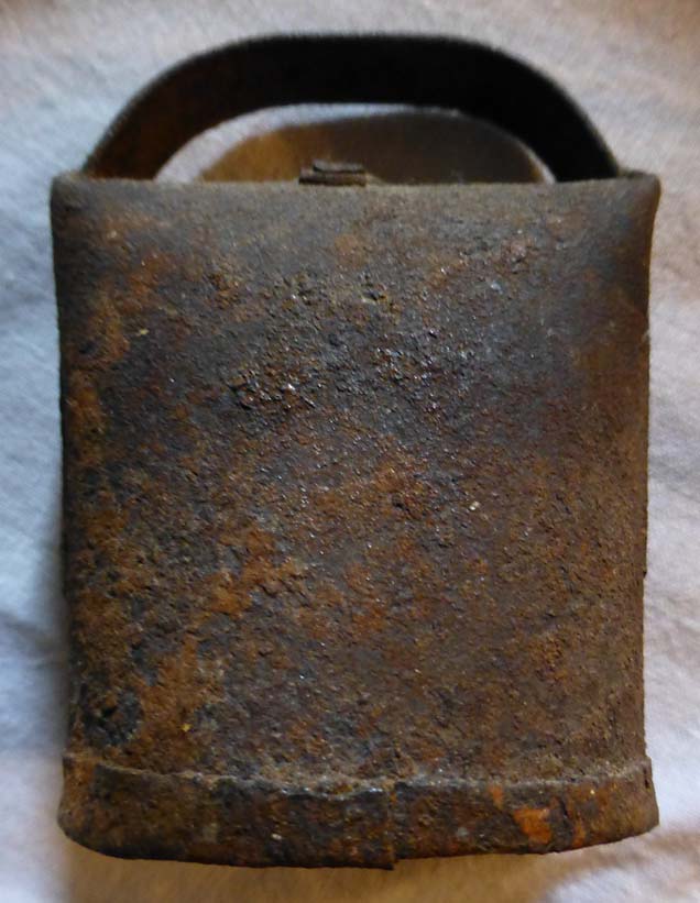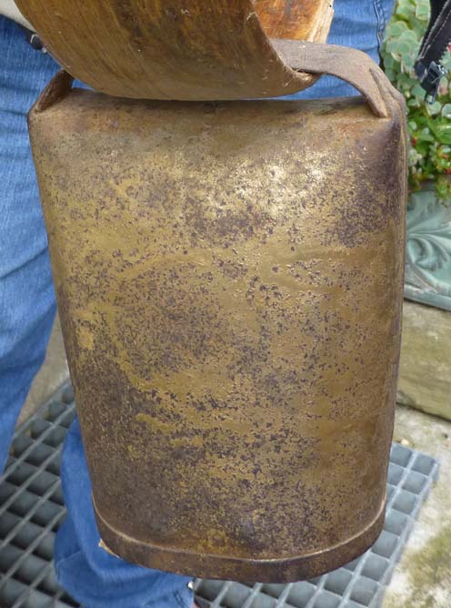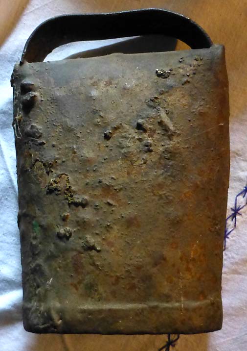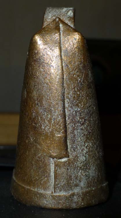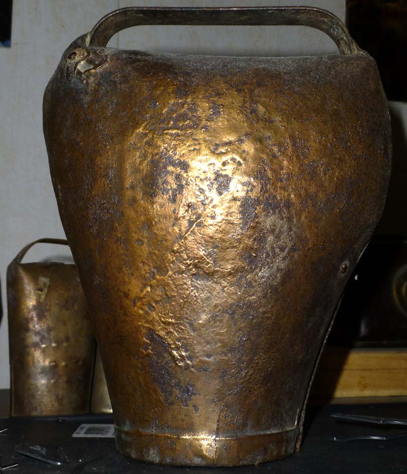 Bélière confectionnée avec une bande de tôle. La forme de la bouche, presque rectangulaire l’apparente à la métaou béarnaise (la Pyrénéenne) plutôt qu’à la Bordelaise à bouche ovale et plus épaisse de tôle.