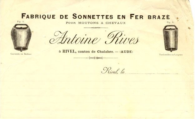 Jean Rives (1802-1887) dit « Jeannet » est sonnetier à Rivel. Son fils Charles Antoine (1855-1932) dit « Rivetou » ou « Ribet » dont les factures sont au nom d’Antoine Rives lui succède. Le fils d’Antoine, Jean-Antoine Rives (1888-1978), appelé Jean Rives, a exercé jusqu’à l’âge de 23 ans soit en 1911. En 1965, il conduit la visite qui a permis l’article du Midi-Libre.