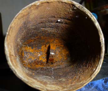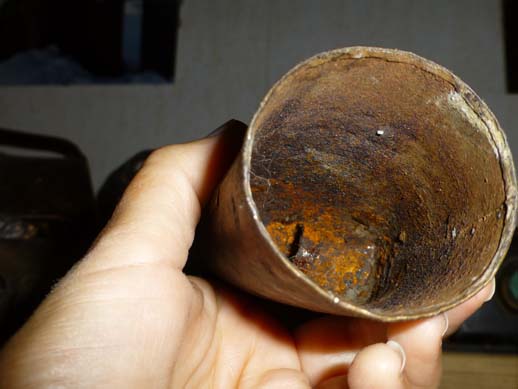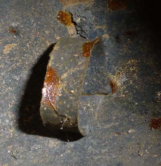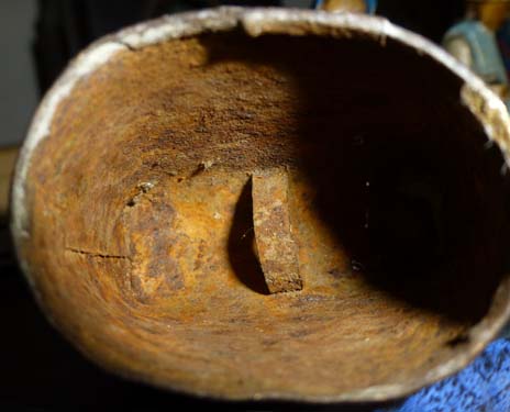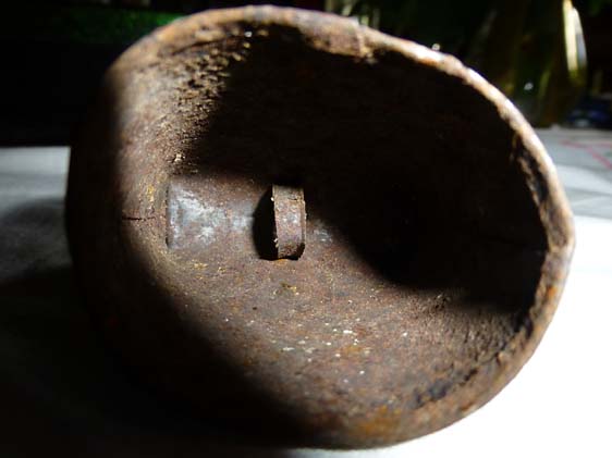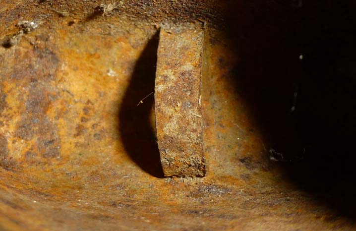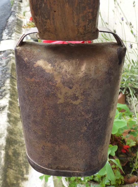 Cairada avec marque : intriguante, cette marque est en réalité celle du fabricant de la tôle ACIERDOUX en bas et GU (?) en haut. Antoine a ménagé cette marque pour qu’elle s’intègre parfaitement avec la cloche.