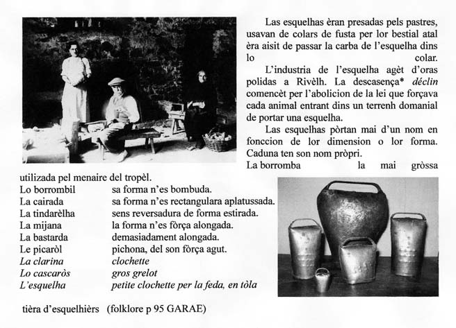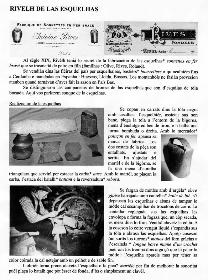 Borromba, borrombil : bombée, redon. Contrairement aux sonnaillers de l’Hérault qui emboutissaient les redons avec une forme, les esquelhers de Rivel ne disposaient pas de presse et façonnaient les borrombils à la main.