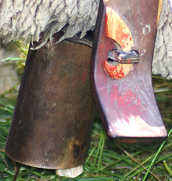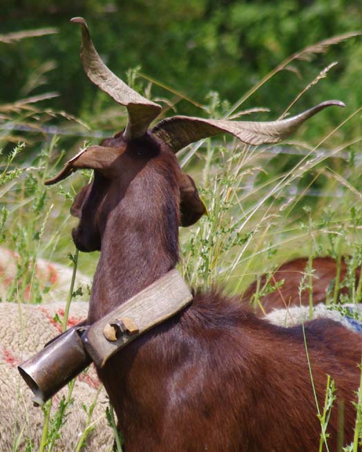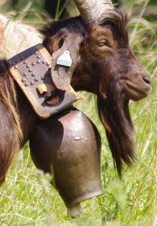En juin 2013, nous avons filmé le troupeau de Sébastien Bos lors de la montée sur le Vercors. Un troupeau finement ensonnaillé avec 140 cloches pour 1700 bêtes réparties entre brebis de race Mérinos d’Arles et chèvres de Roves. La majorité des sonnailles provient de la fabrication de Rémy Bonnel, mais on remarque des redons et des clavelas de Daban à Nay, une platelle et un clavelas espagnol CN, soit Navalon à Albacete et quelques cloches en bronze sur les chèvres.