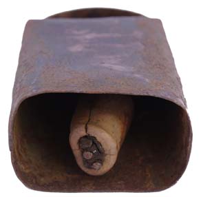 Le clavelas est presque cylindrique, mais plus large à la bouche qu’au cerveau. Clavelas vient de clavel = clou. Une origine du terme qu’on ne connaît pas précisément, mais on est preneur d’une expliquation rationnelle. La présence des rivets à la jupe, hypothèse qui vient immédiatement à l’esprit, ne semble pas valable puisqu’on les trouve aussi sur les piques.